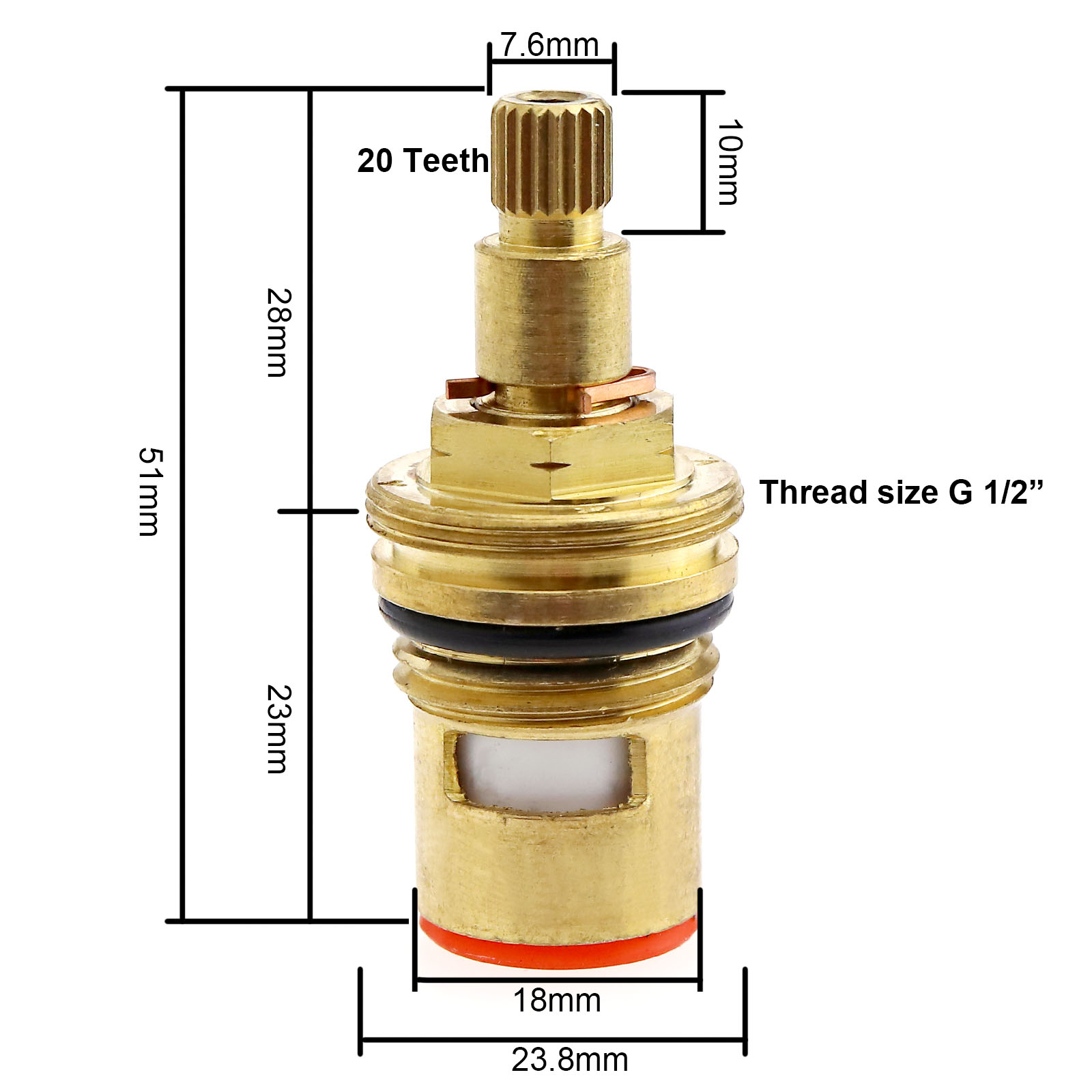 Ceramic Tap Insert Cartridge 1/2" BSP, 1/4 Turn AntiClockwise Close 54mm Height, 20 Teeth
