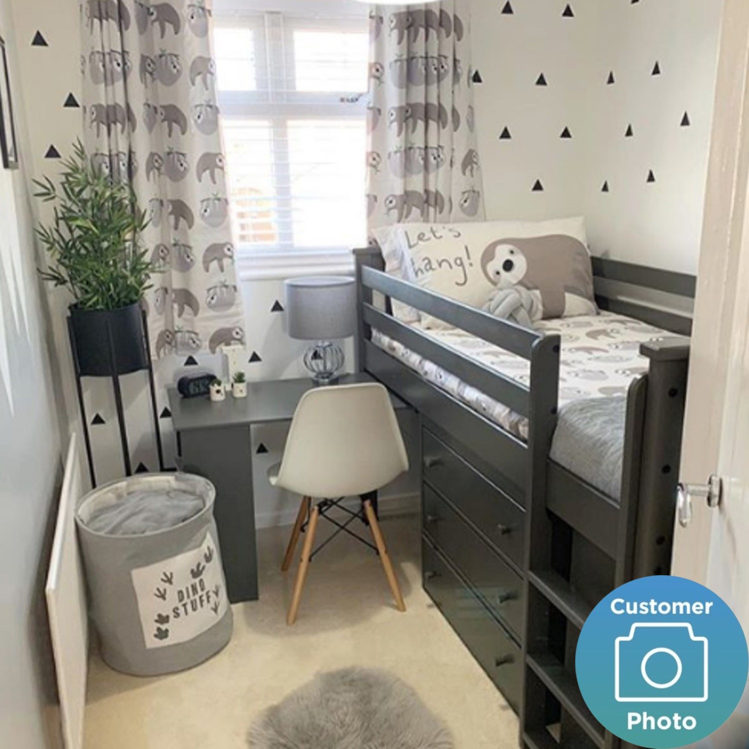 Cookie Grey and White Cabin Bed. This bed is a great space-saving solution for smaller bedrooms, and the built-in multi-storage and study desk is a real game-changer—particularly for older kids and teens. The bed's construction is very sturdy and is built to withstand regular use from children, and the drawers and cabinets are spacious.