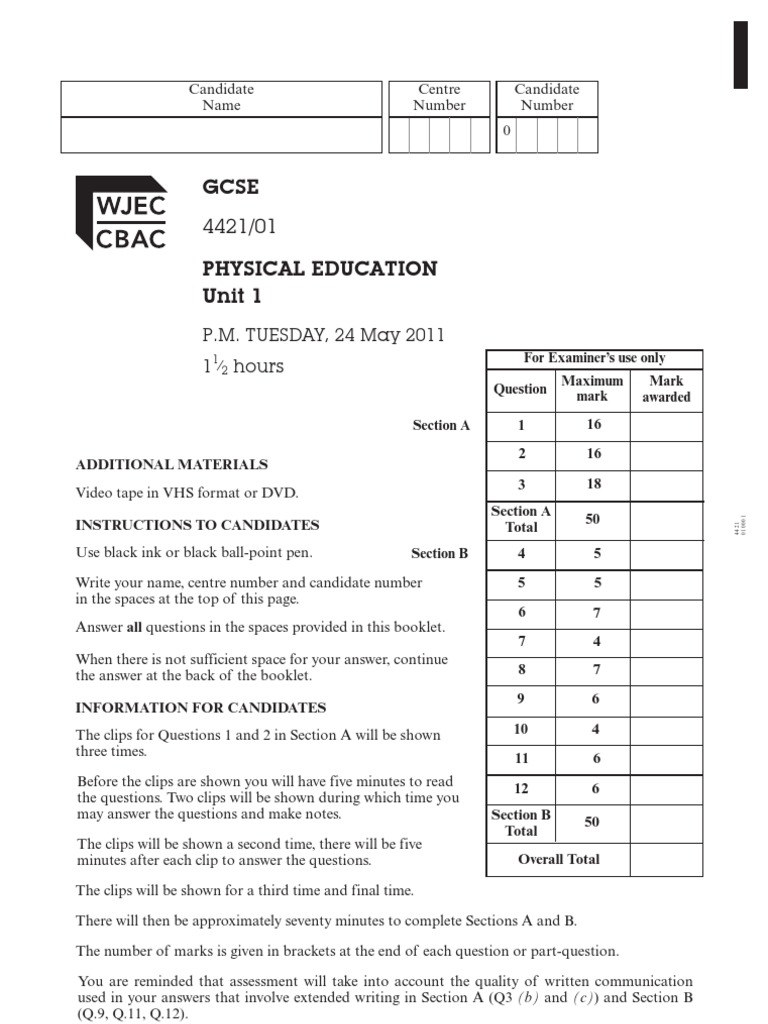 GCSE Past Paper 2011 Physical Fitness Physical Exercise
