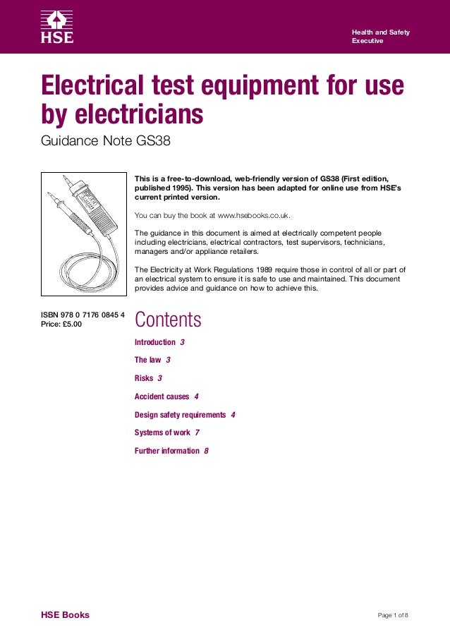 Guidance Note GS38 HSE Books ISBN 978 0 7176 0845 4 Price: £5.00 This is a free-to-download, web-friendly version of GS38 (First edition,. Design safety requirements Test probes and leads 9 The test probes and leads used in conjunction with a voltmeter, multimeter,