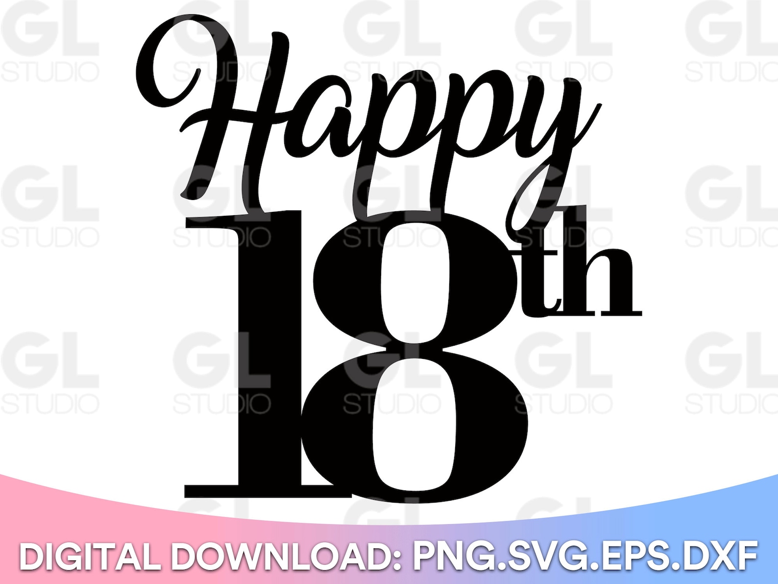 Happy 18th Birthday Personalized Cake Topper Svg, Eighteenth Birthday Svg, Custom 18th Birthday Cake Topper, Birthday Party Decor - PD0045. (2.8k) $2.50. $5.00 (50% off) Happy 18tht Cake Topper. 18th Cake Topper. 18 Cake Topper. Personalized Name Cake Topper. 18th Birthday Decoration. (1.2k)