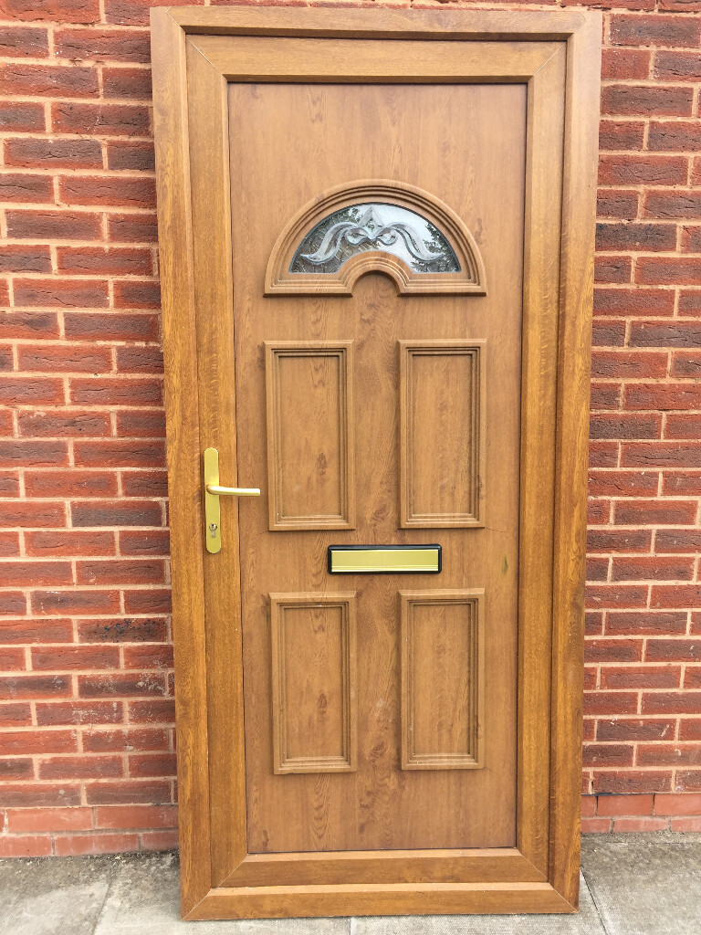 UPVC GLAZED FRONT DOOR LIGHT OAK 95cm WIDE 204.5cm HIGH LETTER BOX Can deliver in Yardley