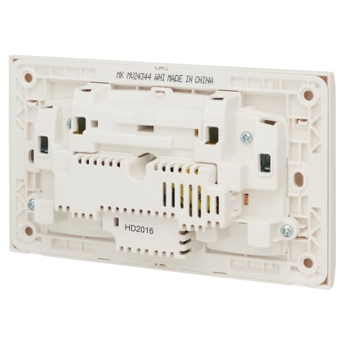 Features of MK Logic Plus K2744WHI 2 Gang USB Switched Socket Include: 2 Gang Double Pole Switched Socket with Twin USB. USB Charge Power: 2A. USB Type: 2.0 and 3.0 USB Compatibility. USBs Protected from Short Circuit or Overload. Can Charge a Device at up to a Full 2A. Dynamic Device Recognition for Optimum Charging Capacity.