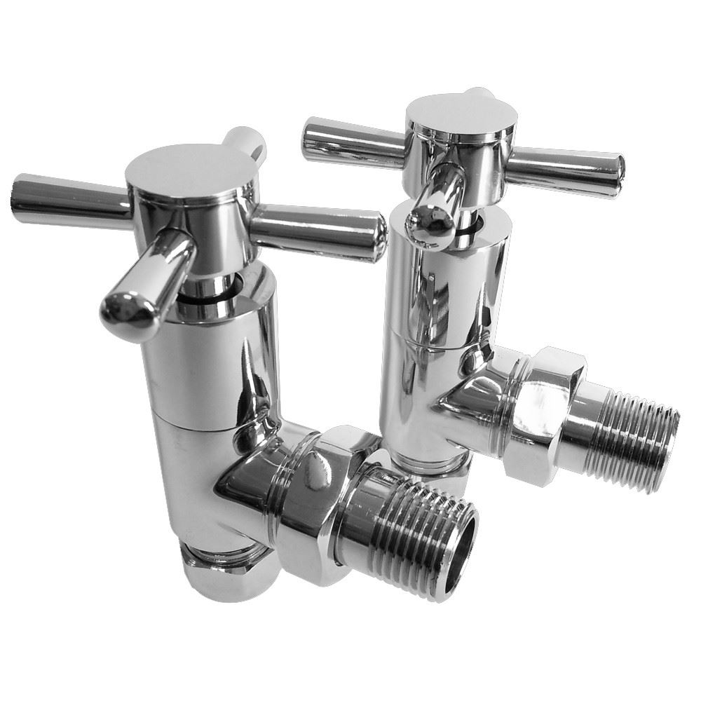 These angled valves connect the hot water pipes to the radiator at a right angle, specifically suited for pipework emerging from walls behind the radiator or situated below floorboards. Free standard UK delivery on all orders over £499. Angled radiator valves are available in an array of styles, spanning from contemporary chrome to classic.